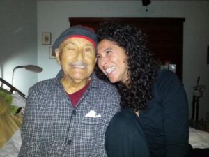 I miss walking the land you grew up on in Puerto Rico and the way you visit with and know every plant that grows there. I miss your morning knock on the bedroom door asking if you can come in and hang out with me. I miss your invitations to visit the garden and see what has happened overnight. I miss your silly punning and ability to tell the same joke, over and over, and genuinely hear it as just as funny as the first time you told it. I miss your phone calls while you sat under the mulberry tree where you would tell me about your moon and ask me to describe the moon in my night sky. I miss your offer to make me a torta for breakfast or take me out to Chinese for lunch. I miss playing dominoes with you on the board you made from scrap materials (everything can be reused!) with the same domino set you’ve had my entire life. I miss your company on my evening walks, you on the phone, making sure I got home safe. I miss the fresh-cut flowers you would have waiting in my bedroom when I’d come home to visit. I miss the playful way you’d hide behind the pillar at the airport, wanting me to “find” you when I came off the plane, and the you did that every time I came home for the last 28 years. I miss watching you play with children so thoughtfully and the obvious joy it brought you. I miss hearing Trio Los Panchos playing from the patio where you would be relaxing in your hammock. I miss how you’d openly and easily cry when touched by a moving lyric from one of the love songs that touched your heart. I miss your wise counsel, guiding me toward forgiveness and acceptance. I miss your warm, strong hugs and the way you tucked me in at night. I miss seeing you stand at security, waiving me a final good-bye, until I am completely out of sight, both of us knowing you will hang around the airport to see my plane take off—not wanting to miss any moment to be together.